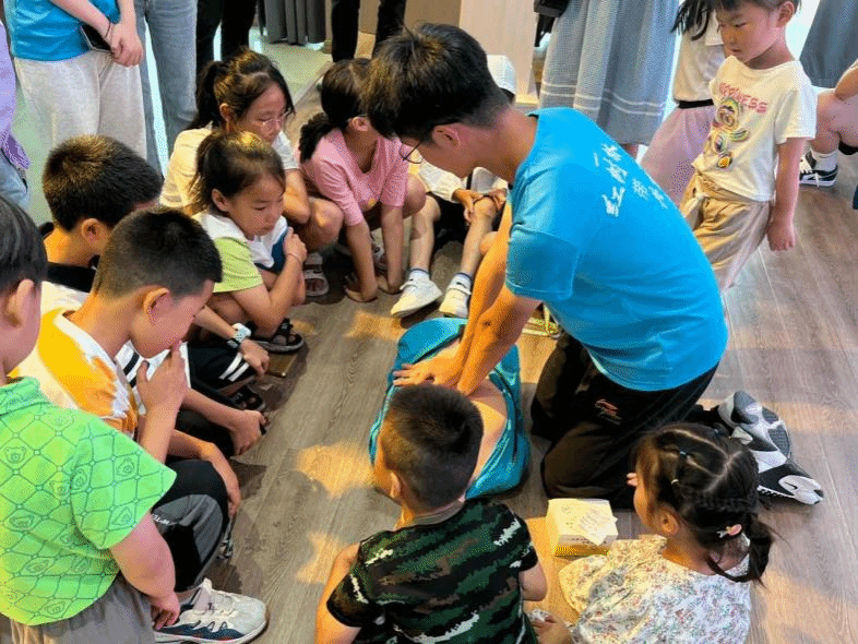 上好急救救护培训课堂。此外,为针对性做好青少年夏日安全教育工作,实践团团员还为霓屿街道生活在海边的小朋友们带去了防溺水安全教育科普,提醒孩子们假期远离野外危险水域,不独自或结伴下水玩耍。同时,拥有红十字会急救证的实践团团员们面向青少年、家长以及社区工作人员进行了急救技能教学,详细展示了心肺复苏急救流程和注意事项,增强避险能力。