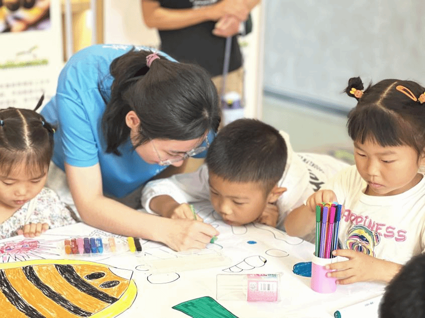 共同完成“保护红树林”主题绘画作品。在充分了解红树林生态系统之后,实践团全体团员与霓屿街道的小朋友们携手完成一卷“保护红树林”主题绘画作品,小朋友们心目中的红树林逐渐呈现在雪白的画纸上,满富童真的一笔笔颜色,共同绘制出了一幅自然生动的湿地画卷。