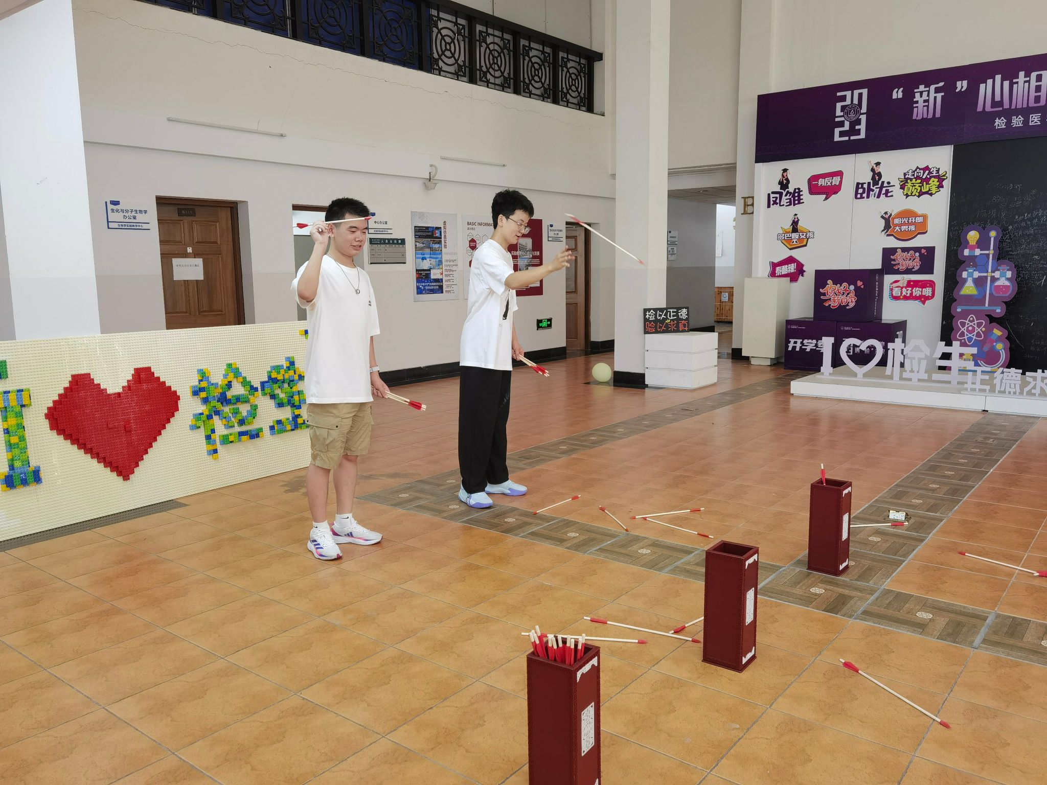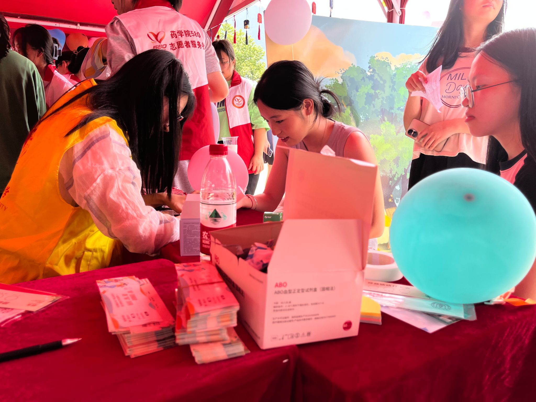 除趣味互动外,学院还在同德楼广场迎新帐篷处设置血型检测,在检测的过程中简介原理和操作步骤,对检生新生进行专业启蒙。