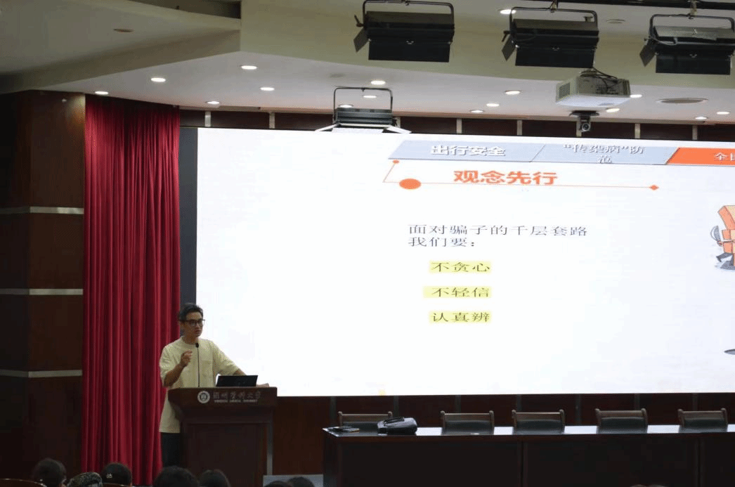 学生工作办公室余信丰结合工作案例,重点向新生们普及了校园安全知识、校纪校规和宗教政策法规知识,并鼓励新生从“新”出发,励志笃行,成为有理想、有担当的新时代青年大学生。