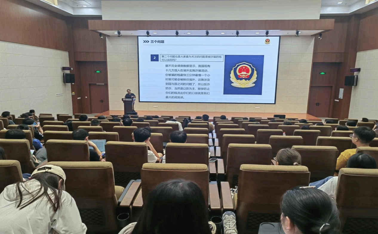 同时,学院也邀请了学校保卫处综合科副主任叶凯老师为2023级研究生开展安全教育培训,叶老师从预防电信诈骗、个人财产安全、实验室安全、交通安全等方面做了具体讲解,以生动详实的案例引人入胜,引发思考,并强烈建议大家安装国家反诈中心APP,为研究生新生的安全了提供强有利安全保障。