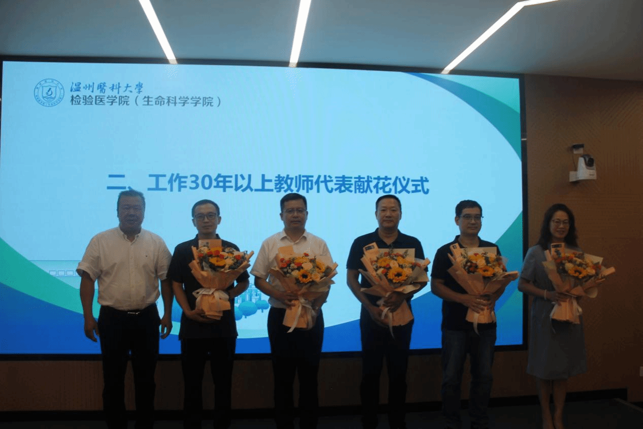 随后,进行了工作30年以上教师献花仪式和退休教师献花仪式。“检生学院是一个温暖的大家庭,作为其中的一员我感到很自豪,也很感谢学院的精心准备,谢谢大家!”退休教职工代表黄晓燕老师感慨的说道。