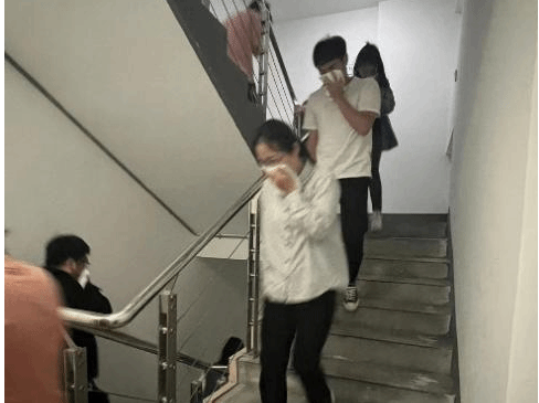 演习正式开始后,科研楼南七楼模拟着火。楼哲丰副院长率先触发手动报警,并和周边老师形成第一灭火力量。消控室老师迅速赶来现场确认情况后向学校监控中心报警,并协助灭火。总指挥胡雪知老师发出人员疏散指令后,消控室立即输出消防广播,启动电梯紧急迫降。科研平台管理老师引导师生从消防楼梯安全有序疏散。指挥员同时命令灭火行动组快速到达火灾现场形成第二灭火力量,迅速控制火情。
