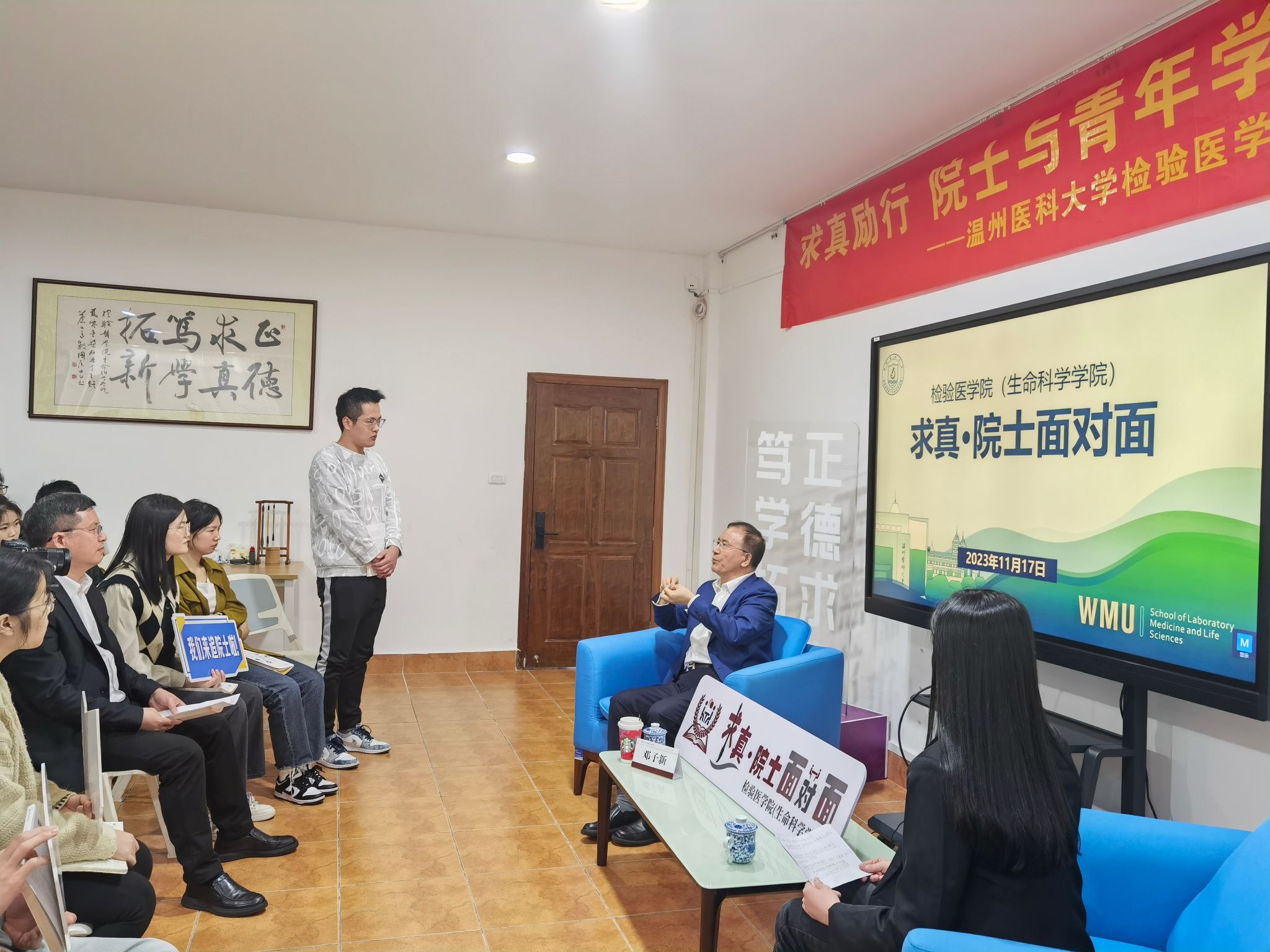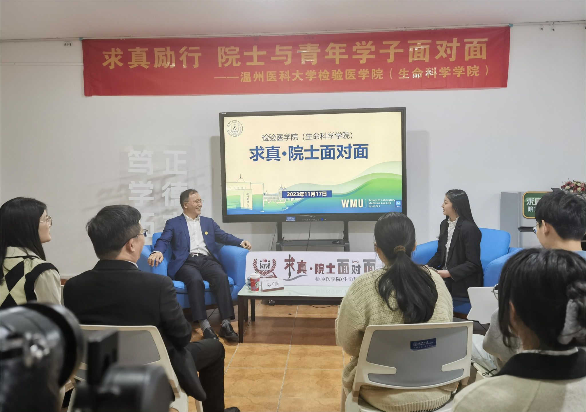 邀请中国科学院邓子新院士与青年学子开展“面对面”交流,学院执行院长郑晓群、学生工作办公室和学位与研究生工作办公室相关人员、本科生和研究生代表参加交流会。