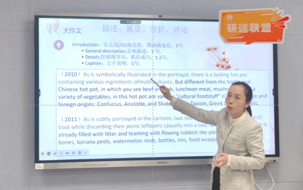 11月28日,外国语学院伊迎老师开展考研英语作文指导讲座,对考研英语写作进行全方位的解析。她从事件、要求和评分细则引入,指出了考试写作模块中的常见错误,重点强调在语言运用中切忌省略、缩写和口语化。伊迎老师还结合历年考题归纳了小作文的常见考查形式和大作文写作中重要的“描述、寓意、分析、评论”四步法并给出了一些指导意见。