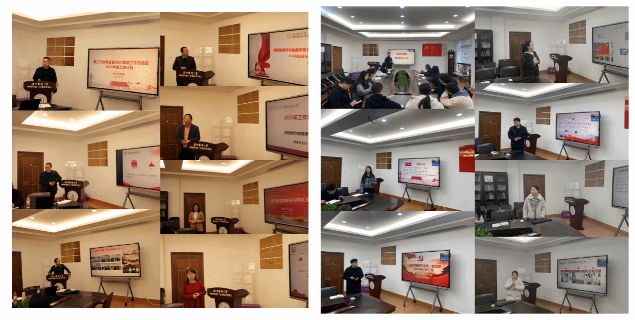会上,各党支部书记围绕支部基本情况、2023年工作进展、问题剖析、工作举措和特色品牌项目建设等方面逐一述职汇报。