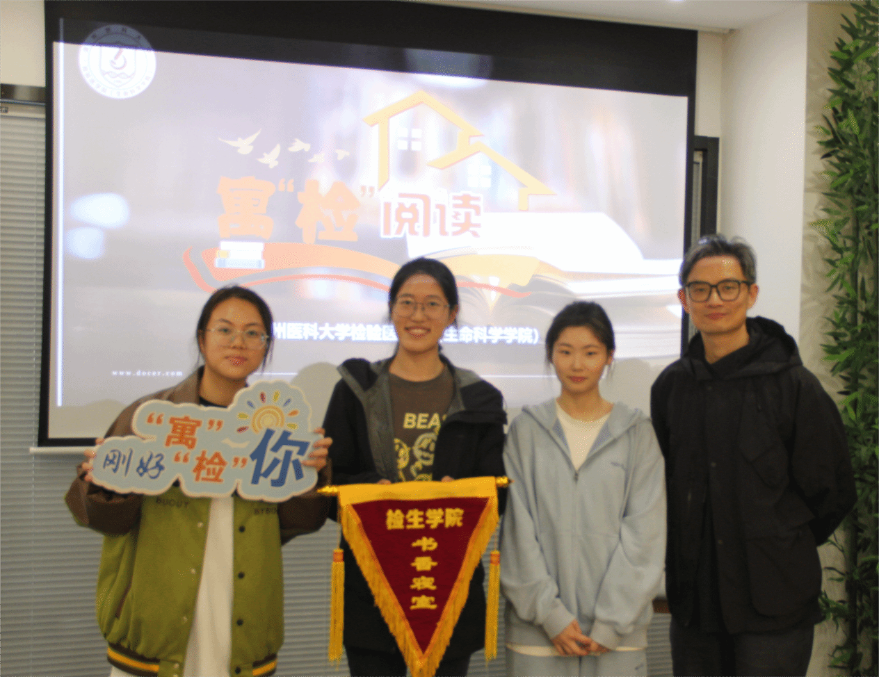 于4月22日在学生公寓我家客厅举办“寓’检’阅读 遇见美好”师生读书分享会。此次活动邀请了不同年级不同专业的4个书香寝室的同学参加,院党委副书记余信丰、院妇联副主席潘亮亮、团委书记吴东方老师参与活动。