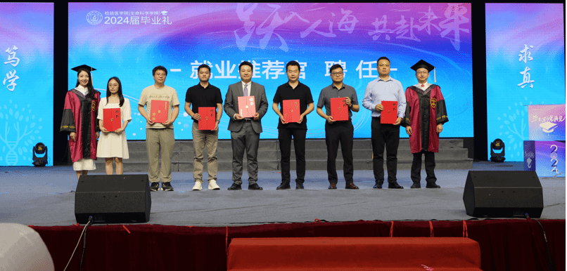 前期,学院院长郑晓群带队赴金域医学开展“访企拓岗促就业”专项行动,了解企业用工需求、发展前景等情况,加强双方在实习就业一体化、新技术应用、学术交流和人才培养等领域的合作。在2024届毕业礼上,学院特邀金域医学企业代表与2024届被录用本科毕业生牵手走红毯,并聘任金域医学高管为就业推荐官,开启校企合作新篇章。
