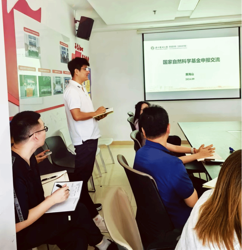 在生物医药科研大楼南702会议室举行第一轮国家自然科学基金动员及交流会。会议由黄海山副院长主持主讲。