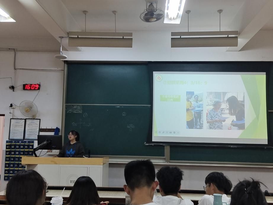 随后,开展第一次学生工作理论培训。学生会主席罗添齐向新任干事们介绍了策划活动相关的要求和规划。团委副书记徐乐瑶围绕“办公软件”主题,分享办公软件应用技能以及通知撰写要点。团委科创委员陈帝仲介绍了具体的报销流程工作。阳光志愿者服务社主席梁可晗科普活动拍照技巧。