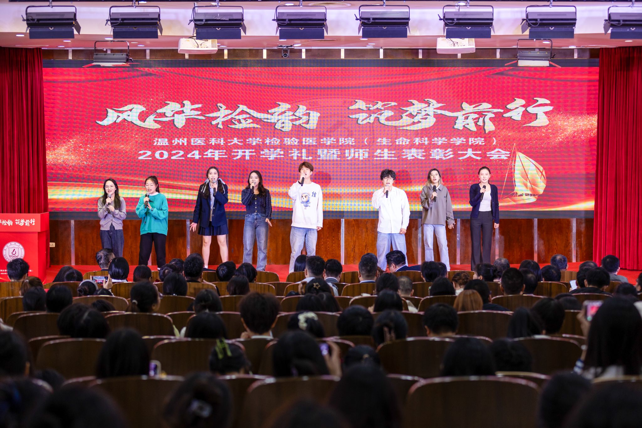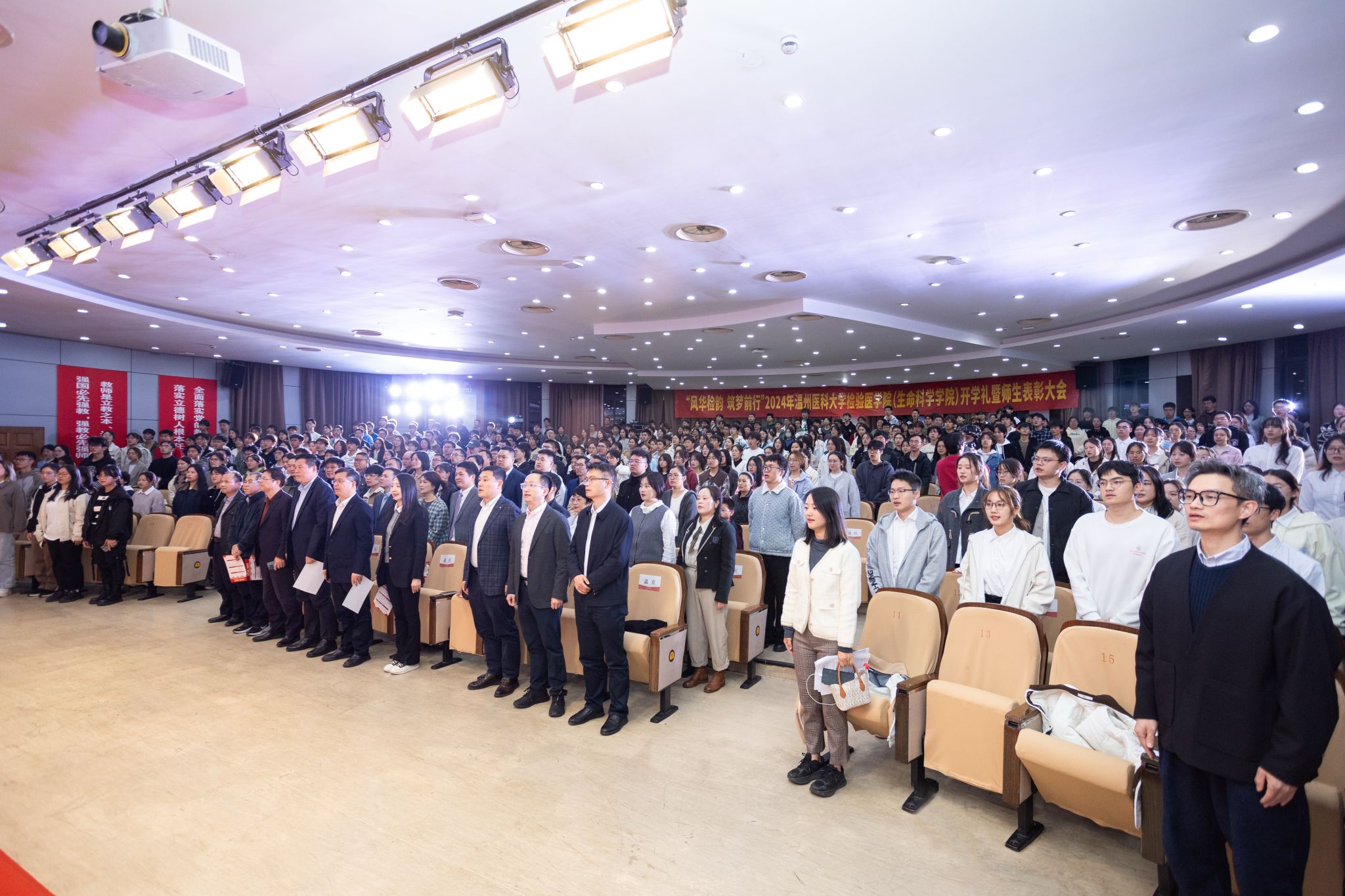 2024年开学礼暨师生表彰大会于旭光厅举行。学院院长郑晓群,学院党委书记、副院长洪晓畅,教务处副处长关万春,学院党委副书记余信丰,学院副院长黄海山,学院副院长谢旦立,迪安、安图、艾迪康、罗氏、思塔高的企业代表,学院高层次人才,各系、教研室主任,师生代表及2024级全体新生出席本次大会。