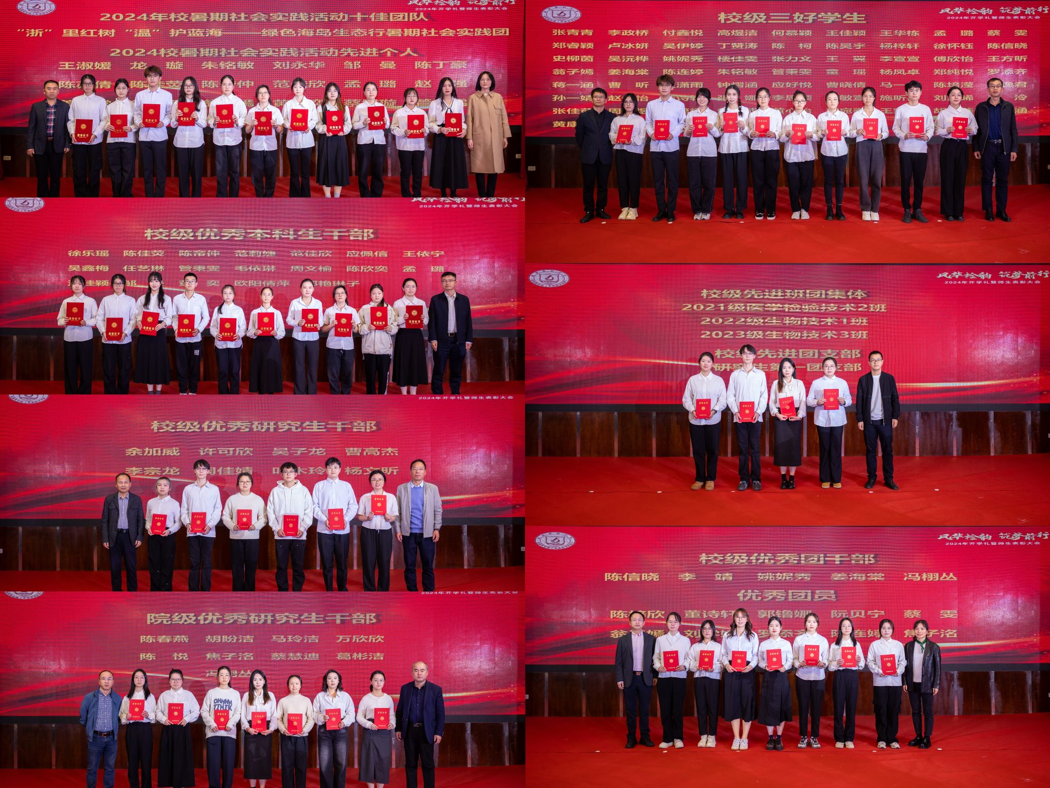 青春逐梦,赓续荣光,学生表彰仪式有序进行。本次表彰涵盖了国家奖学金、国家励志奖学金、浙江省政府奖学金、国家级省级双创竞赛获奖团队、优秀学生干部、三好学生以及迪安奖学金、思塔高、罗氏奖学金、安图和拱东奖学金等社会奖助学金,弘扬学生榜样力量,传递奋斗情怀,进一步激励全体学生刻苦学习、锐意进取,再创佳绩。