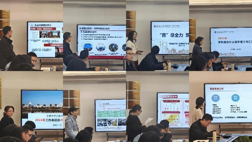 各科室(中心)负责人条理清晰、主题明确地展示了2024年度工作亮点,并规划了2025年工作蓝图,表达了对未来发展的坚定信心。办公室发挥枢纽效能,保障学院高效稳健运行;教学办公室聚力本科教学,全面提升教学质量水平;学科建设办公室展示学科成就,推动科研项目与平台发展;学位与研究生办公室着力规划研究生教育蓝图;学生工作办公室加强党建引领,促进学生全面发展;学院团委强化思想引领,助力青年团员成长成才;实验教学中心优化实验环境,提高学生实践操作技能;科研平台完善管理架构,注重提升科研人员能力。