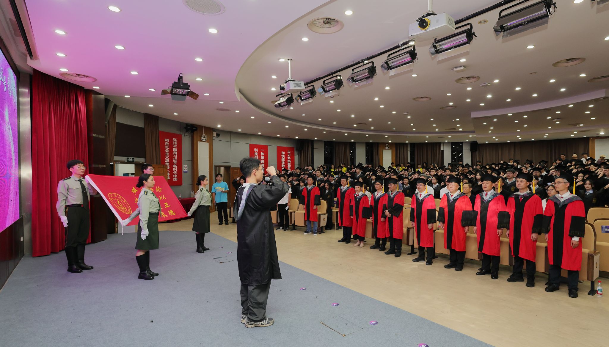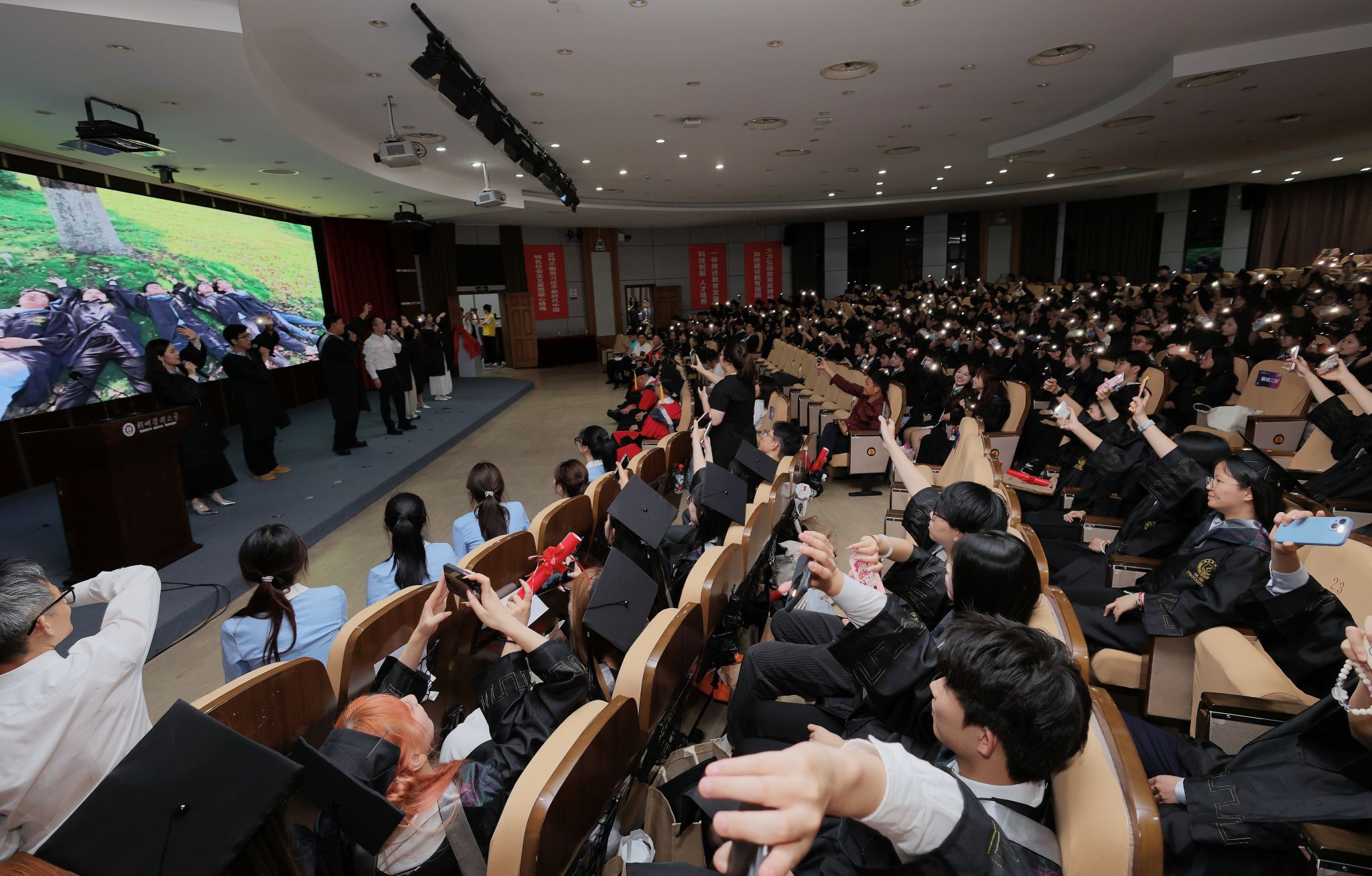 在学位授予环节,导师们为学子依次拨穗正冠,象征着学子学有所成,展翅高飞。