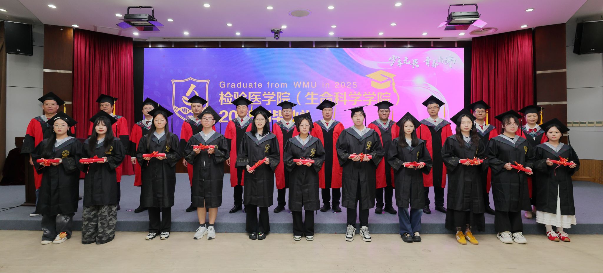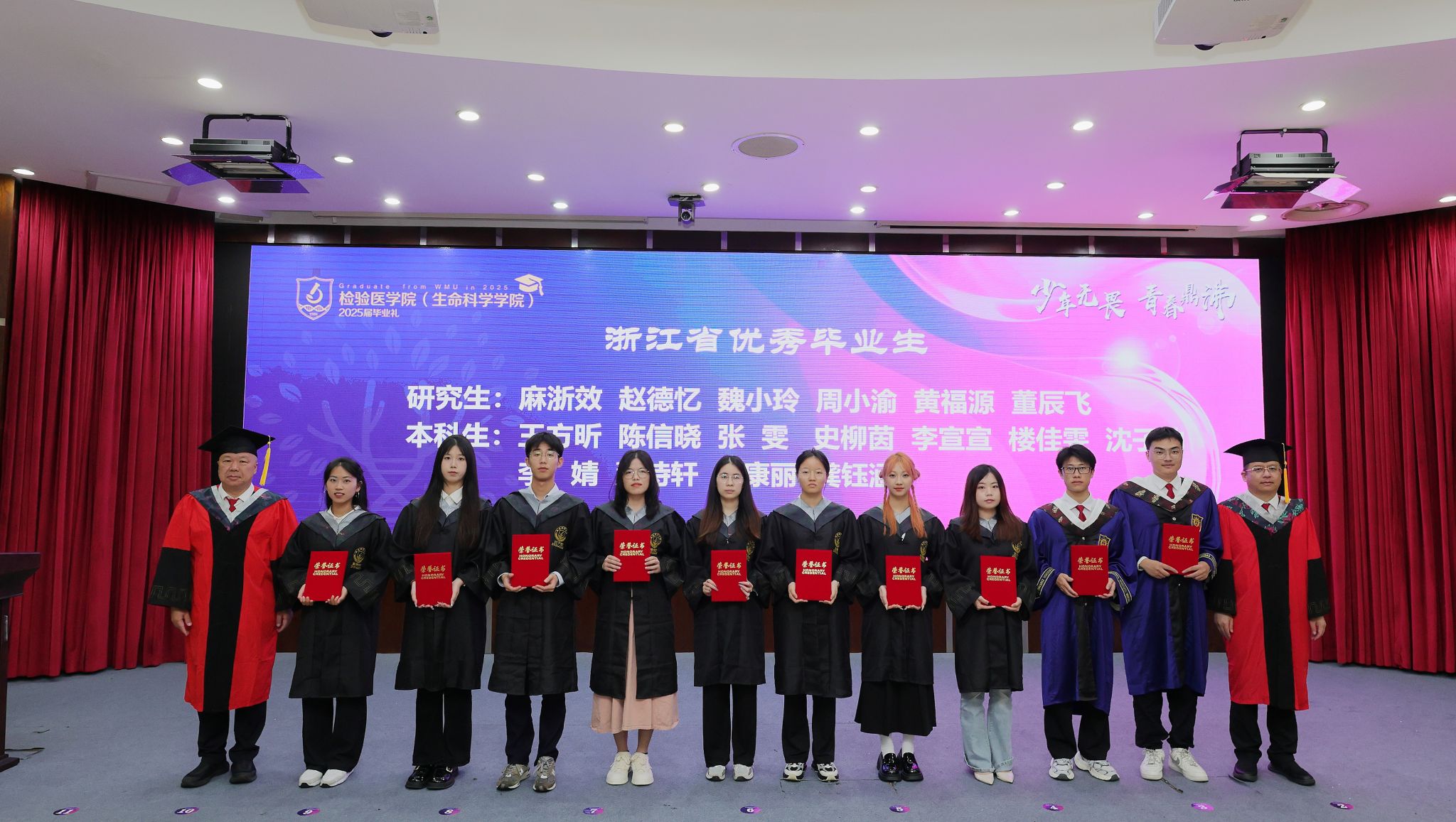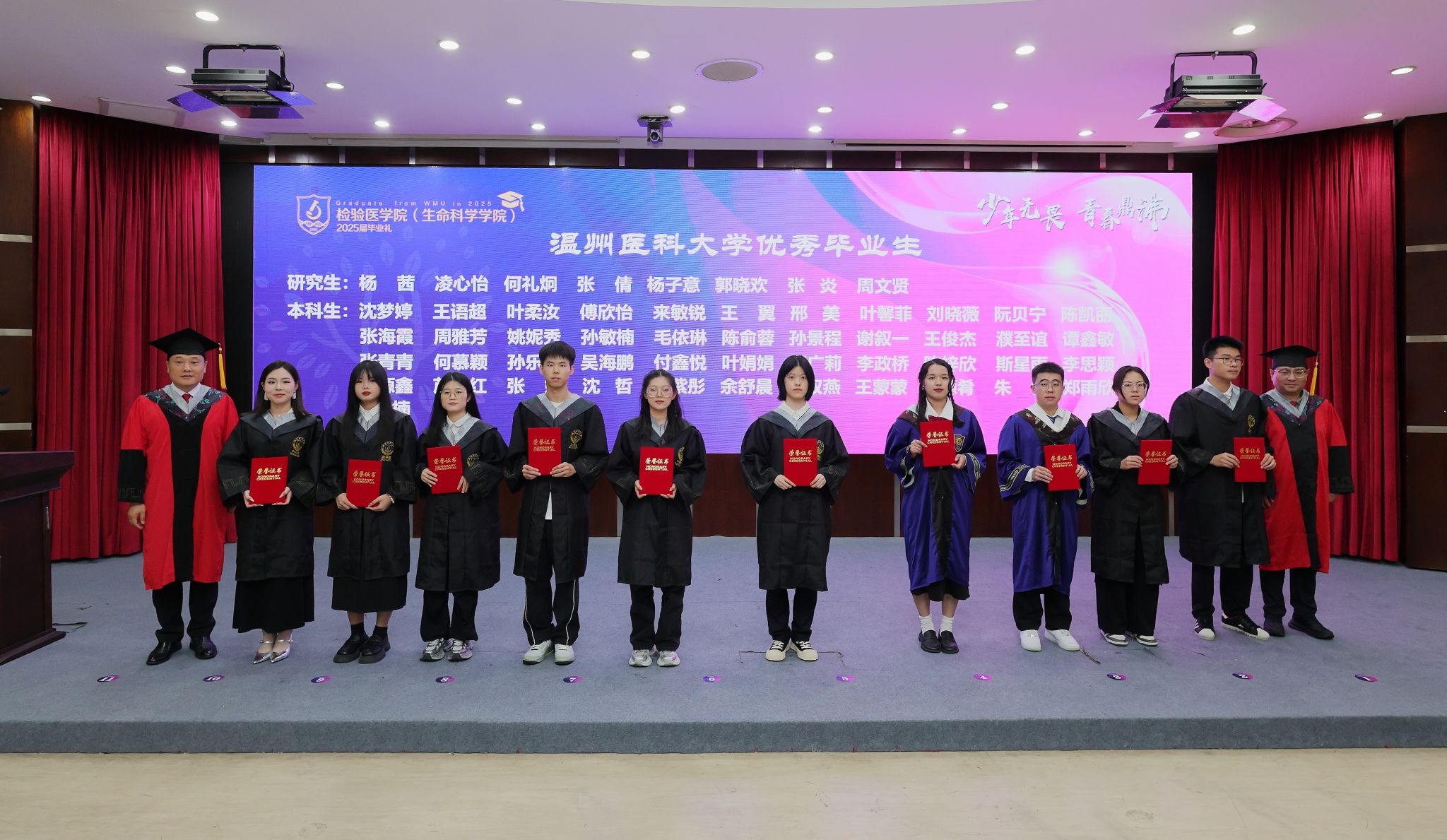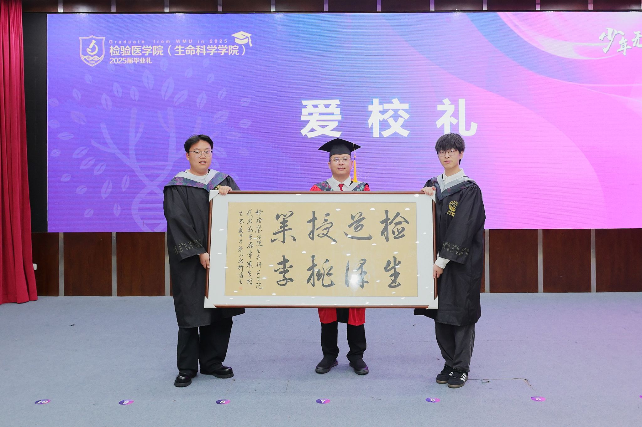 韶华永熠,未来可期。毕业生代表献上诗朗诵《听!青春在毕业季的交响诗》,以真挚的情感,围绕信念坚守、志愿服务、科研攻坚、体育拼搏、学生工作、升学从军等方面,娓娓道出在温医大的成长足迹与心路历程,勾勒出新时代青年勇毅前行的青春群像,引发全场共鸣。