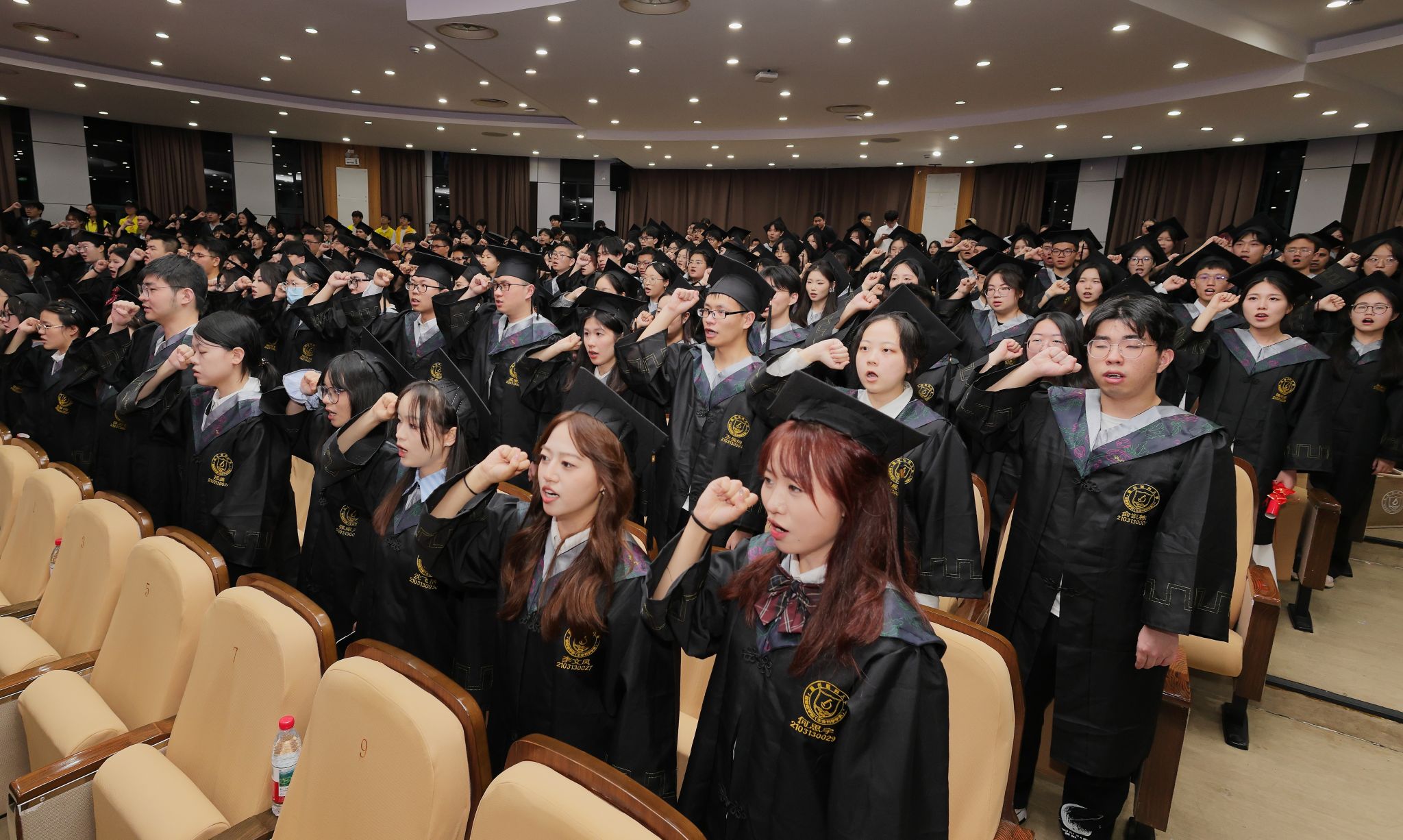 “检以正德,验以求真,生而笃学,命之拓新!”全体毕业生肃立重温院训。十六字誓言凝聚着学院精神的内核,不断激励着检生学子奋发有为,在时代浪潮中勇毅前行。