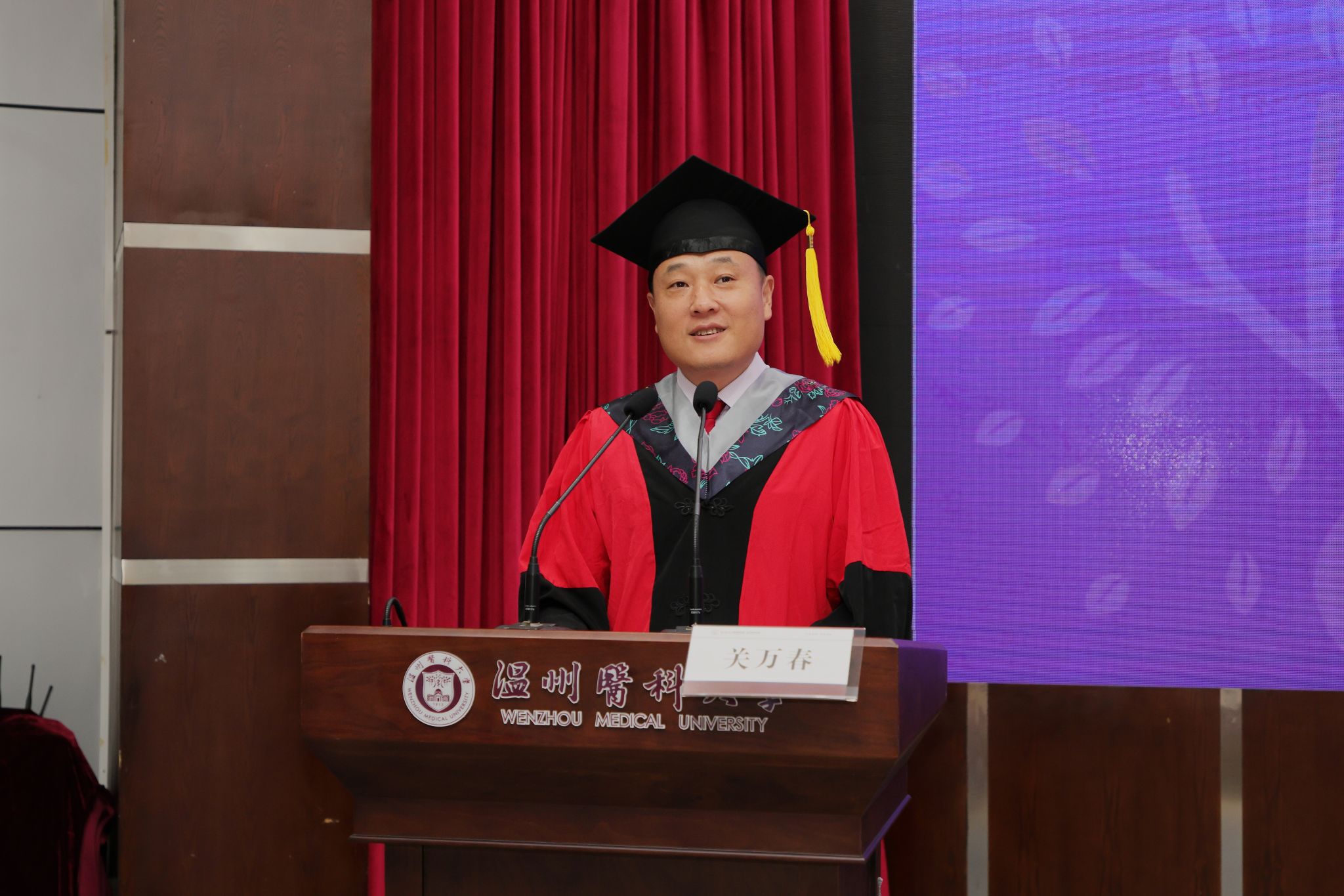 教师代表、教务处副处长关万春深情回顾与2025届学子共度的时光,勉励毕业生永葆对美好的向往,对真理的追寻,对生命的悲悯,以精密严谨的态度筑牢专业根基,以无畏之脊直面征途。