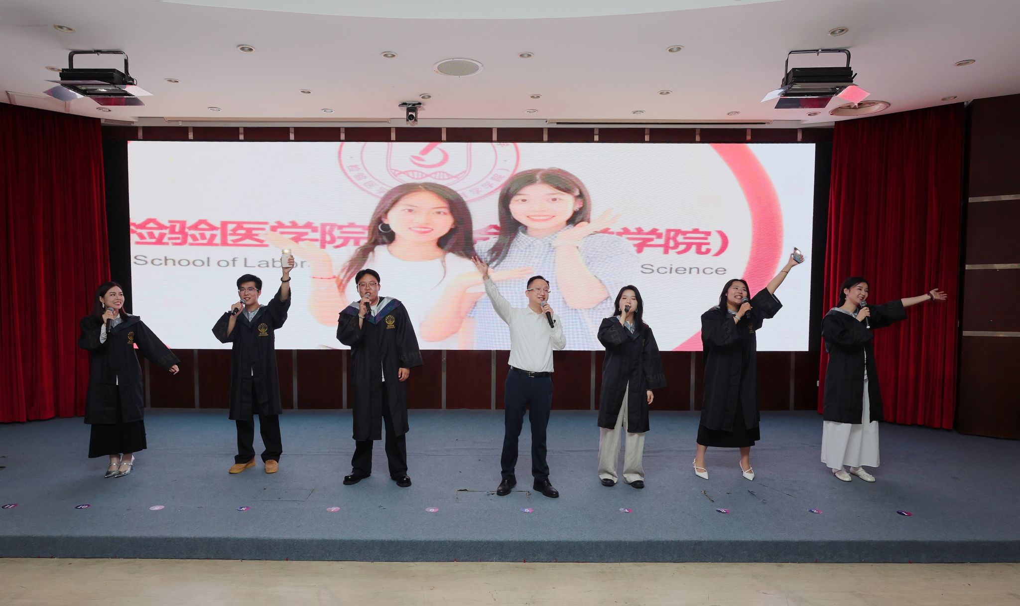 院长郑晓群做毕业礼致辞,他高度肯定了2025届毕业生们在专业学习、科研创新、社会实践等方面取得的优异成绩。面对即将开启新征程的学子,郑晓群院长提出三点期望:一是以家国情怀立心,以全球视野致远,怀揣长期主义的信念,助推检验医学与生命科学事业破浪前行;二是以创新驱动突破,以融合赋能发展,让技术真正服务于疾病预防和健康促进;三是以实践厚植根基,以担当守护民生,践行“生命至上”初心。郑晓群院长勉励全体“最年轻校友”在中国式现代化建设中挺膺担当,向下扎根,向上生长,为医学事业贡献青春力量。