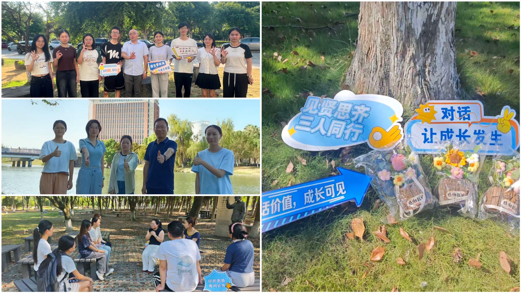学院还推出“师生三人行”特色活动,以“师泽如光,明心致远”为主题,组织师生在校园人文景点处开展轻松温馨的交流。活动打破传统课堂形式,师生围坐畅谈生活、科研与社团经历,在互动中增进理解与情谊。学生们向老师赠送自制纪念礼盒,老师则回赠书签与寄语,营造了教学相长、亦师亦友的良好氛围。