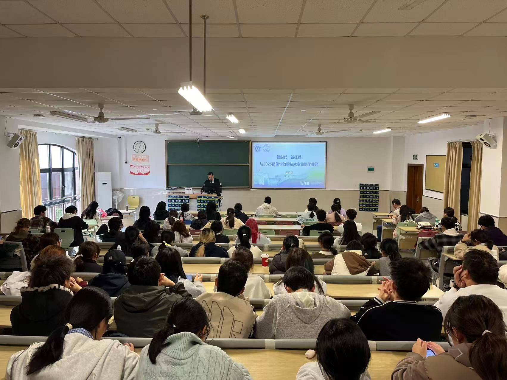 医学检验技术专业新生教育大会由专业负责人郑晓群院长主讲。他从时代背景、社会需求、专业发展三大维度,为新生系统解读了医学检验技术专业的核心价值与发展前景。结合当前医疗健康领域的人才需求格局,郑院长强调,医学检验专业人才肩负着守护公共卫生安全与生命健康的重要使命,勉励同学们以专业素养为根、以责任担当为魂,成长为兼具精湛技术与人文情怀的优秀检验人才。