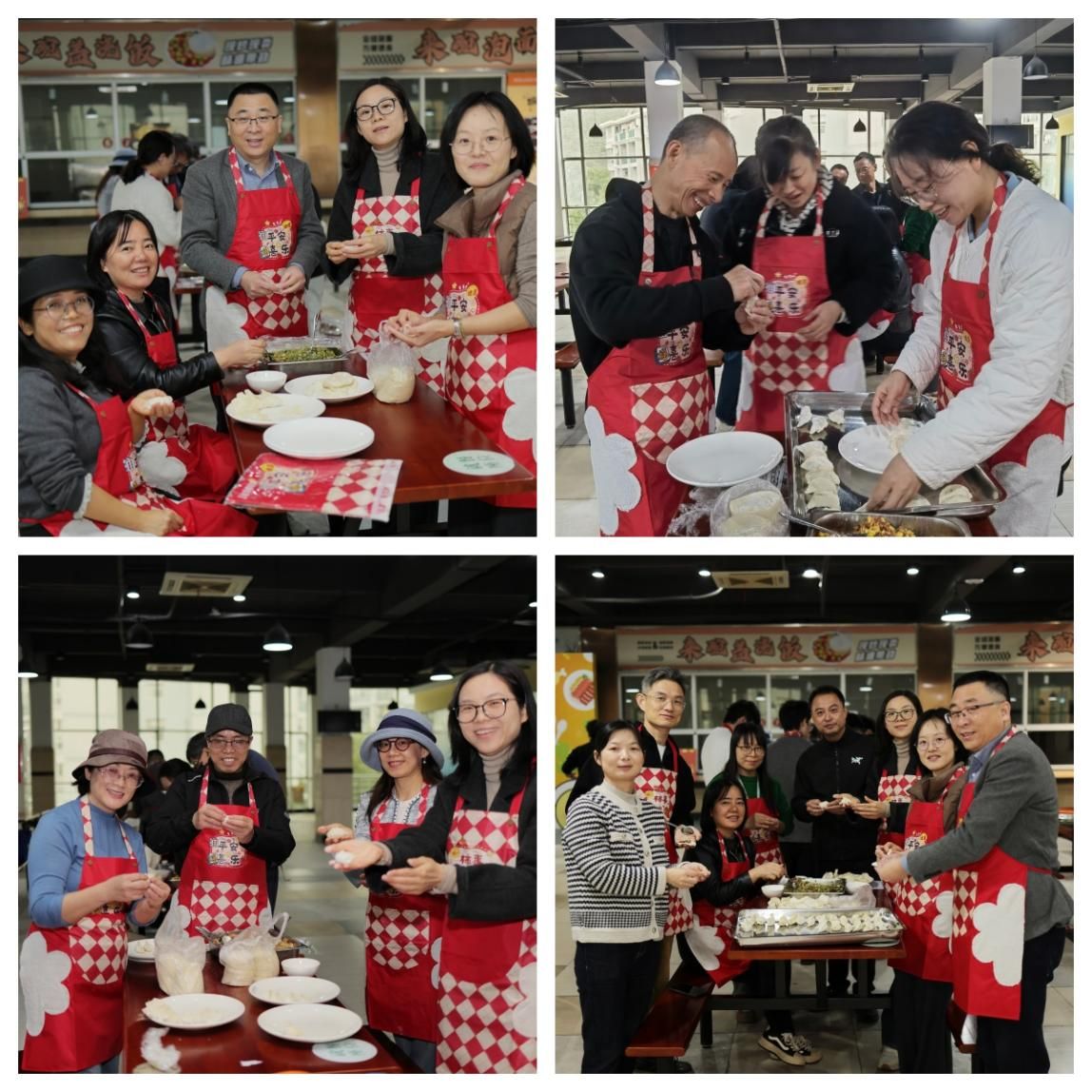 活动现场暖意融融,师生携手奏响“劳动协作曲”。在学院工会的精心组织下,一场兼具地域风味与心意温度的美食盛宴徐徐展开:有老师特意从家乡带来特色食材,现场演绎地道风味,让舌尖跨越山海;有老师提前在家匠心烘焙,将细腻甜品与满满关怀一同带来;更有师生参与的包饺子环节,大家填馅、捏合,一只只形态饱满的饺子陆续成型,既承载着传统饮食文化的韵味,更传递着团队协作的力量。随着热气腾腾的饺子出锅,几十道家常菜、特色菜与精致甜品缤纷上桌,香气萦绕食堂,欢声笑语此起彼伏,师生围坐品尝、畅谈,让校园食堂化作充满温情的“大家庭客厅”。