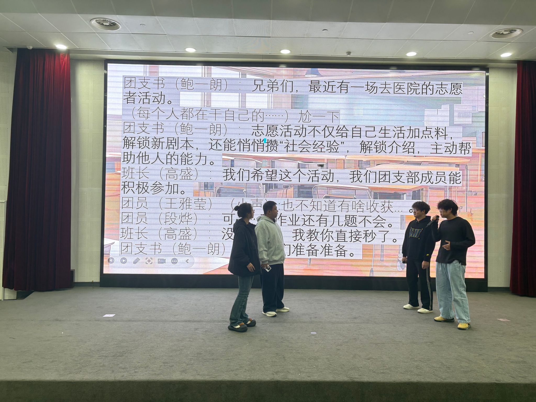 卫检2班演绎情景剧《青衿聚力:团支部首赴志愿医线》,真实呈现团员初次参与志愿服务的内心成长。