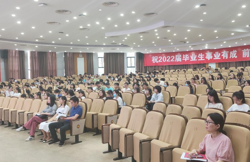 在旭光厅举行毕业生实习进点教育大会。2022届医学检验技术(含仁济)、卫生检验与检疫、生物技术等专业全体学生、辅导员、教学办老师参加了此次会议。会议由教学办副主任陈晨主持,学院教学副院长关万春出席会议并作重要讲话。