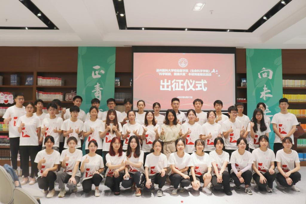 “科学赋能 健康共富”暑期社会实践团出征仪式在图书馆青春之书房举行,院党委副书记陈贤新、暑期实践团指导老师吴东方、黄小彪及全体实践团成员参加此次出征仪式。