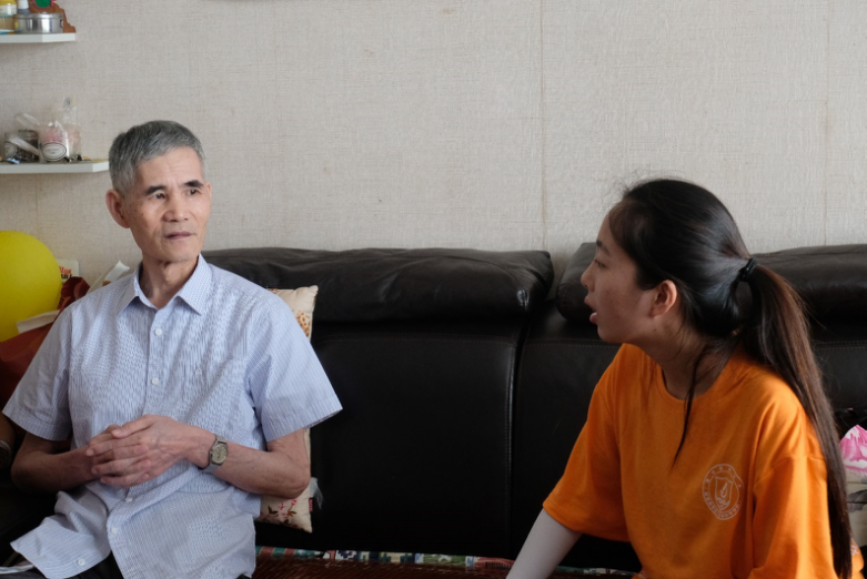 实践团学生党员拜访了龙湾万顺社区有61年党龄的朱巨铭、陈占旺两位老党员。