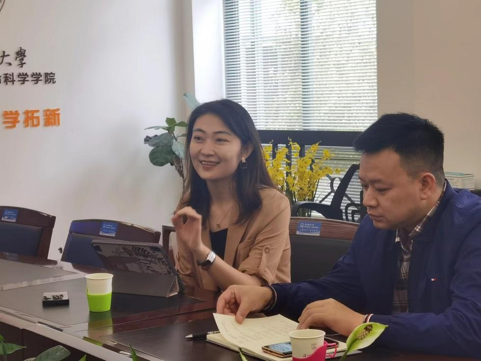 近日,广州金域综合生产线总监邵晓丽校友回访母校。学院党委书记管素叶、副院长楼哲丰、学校校友工作办公室主任叶少芳等参与了交流。