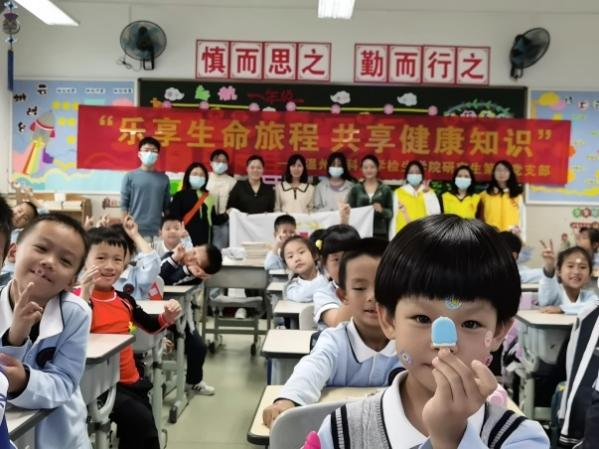 研究生第一党支部在支部书记林虹老师和团委副书记吴东方老师的带领下,走进了温州大学城附属小学一(5)班,开展了一次以“乐享生命旅程,共享健康知识”为主题的健康知识进课堂的宣传活动。