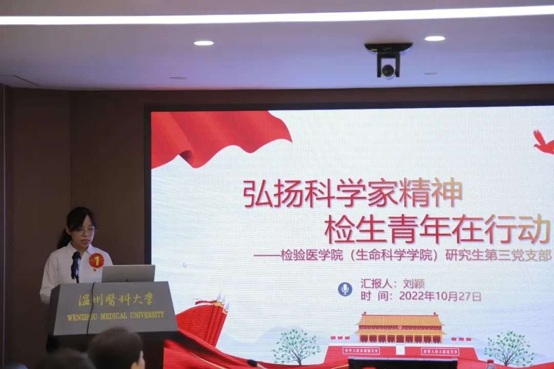 研究生第三党支部则以“弘扬科学家精神,检生青年在行动”为主线,聚焦科学家精神,传承检验人使命,基于“学思践悟”四位一体的党员培训机制,以“四个零”为基础力争打造更加优秀的研究生党支部:零落后——思想上再“充电”,零逃避——对话“逆行者”,零静止——我们在思考,零后退——检生青年在行动,在学思践悟中筑牢党员们的理想信念,在知行合一中践行检验人的初心使命,最终获评第七名。