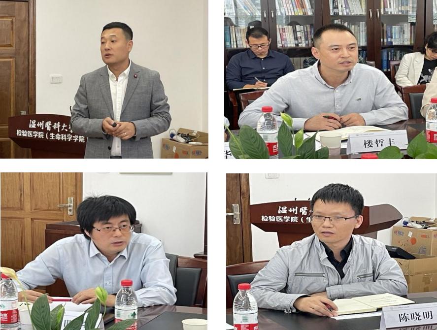关万春副院长、楼哲丰副院长,江明华主任、陈晓明主任等围绕创新人才培养、课程教材建设、实验教学改革、实验课程思政建设推进、临床教学与基础教学融合、临床师资队伍教学水平提升、课程群教学内容整合衔接等内容进行了交流。