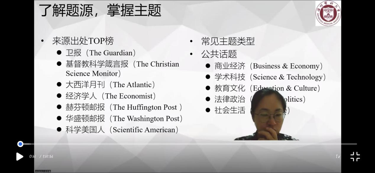 11月3日,伊迎老师开展考研英语作文指导讲座。她从事件、要求和评分细则引入,指出了常见错误,重点强调在语言运用中切忌省略、缩写和口语化。此外,伊迎老师还结合历年考题归纳了小作文的常见考查形式和大作文写作中重要的“描述、寓意、分析、评论”四步法。
