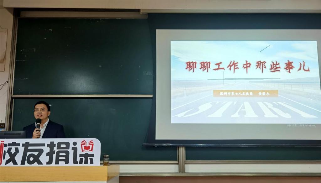 举办校友捐课第二讲。此次课程邀请94级医学检验专业校友、温州市第七人民医院党委书记黄国永主讲,由副院长楼哲丰主持。