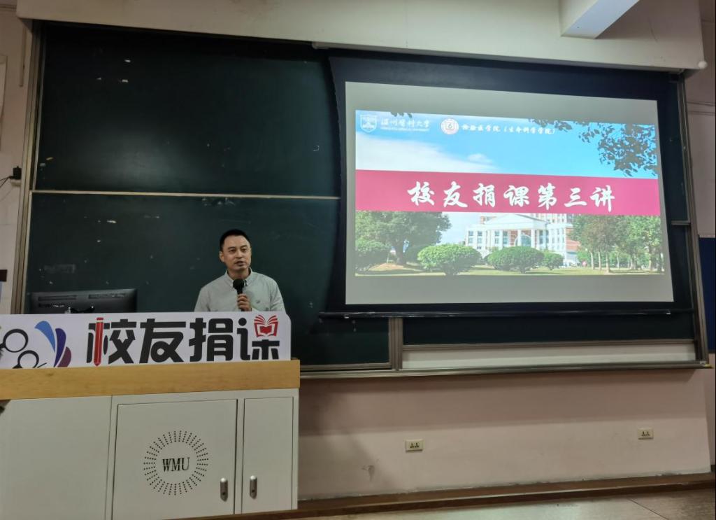 举办校友捐课第三讲。此次课程邀请到05级医学检验专业校友、罗氏诊断浙江区域卓越客户经理徐来主讲,由副院长楼哲丰主持。