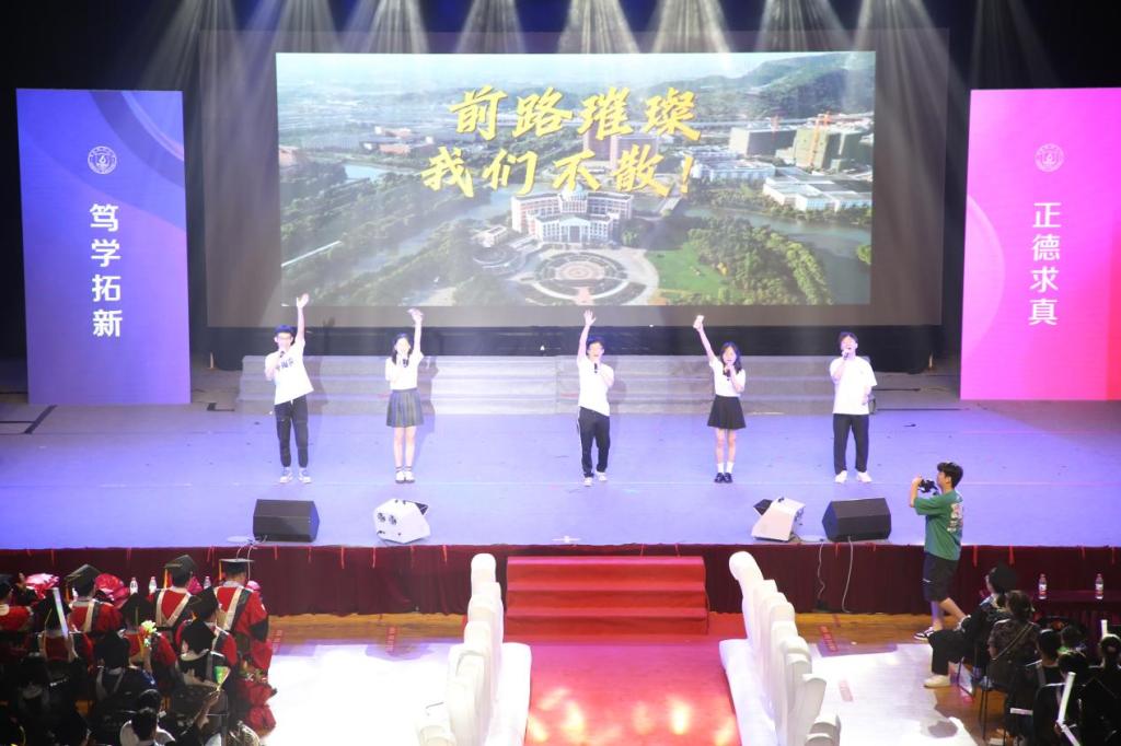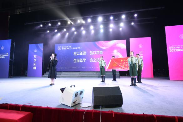 回忆往昔,放眼未来。在毕业礼的诗歌朗诵《青春不安放》中,毕业生们结合在校期间的学习、科研和生活体会,围绕信念、升学、科研、运动、学干、志愿等主题,真实讲述了自己的青春故事,描绘出新时代青年奉献青春的动人画卷,引起了现场师生们的强烈共鸣。同时,他们饱含深情地抒发了对学院深深的感恩与热爱之情,并祝福2023届毕业生以梦为马,不负韶华,前程似锦,一路生花。