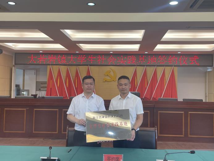 执行院长郑晓群与大若岩镇党委书记张克举行大学生社会实践基地授牌仪式。