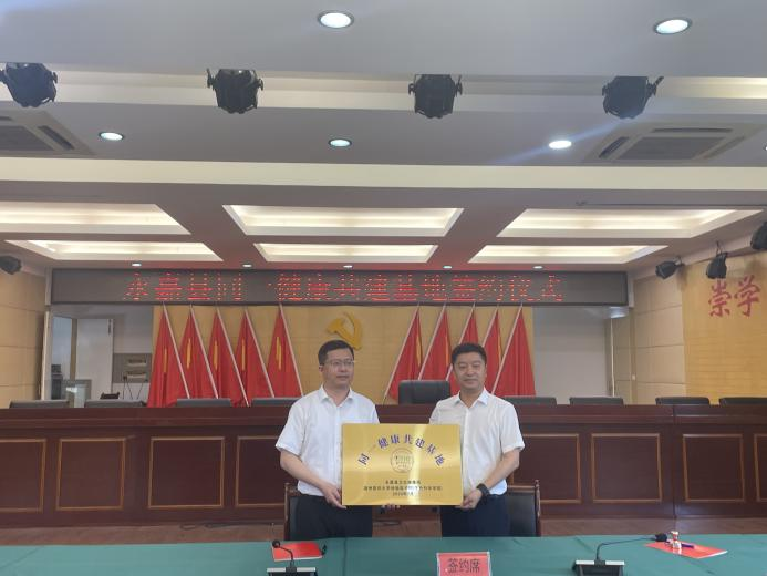 随后,执行院长郑晓群与县卫健局党委书记、局长滕翀敏签署同一健康共建基地协议书,并举行授牌仪式。
