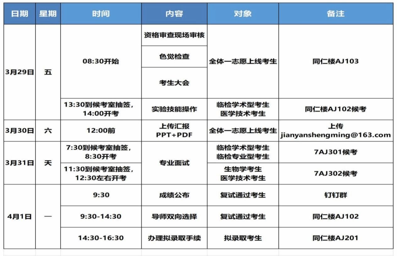 (二)临床检验诊断学专业型和生物学专业考生的复试形式为综合面试。