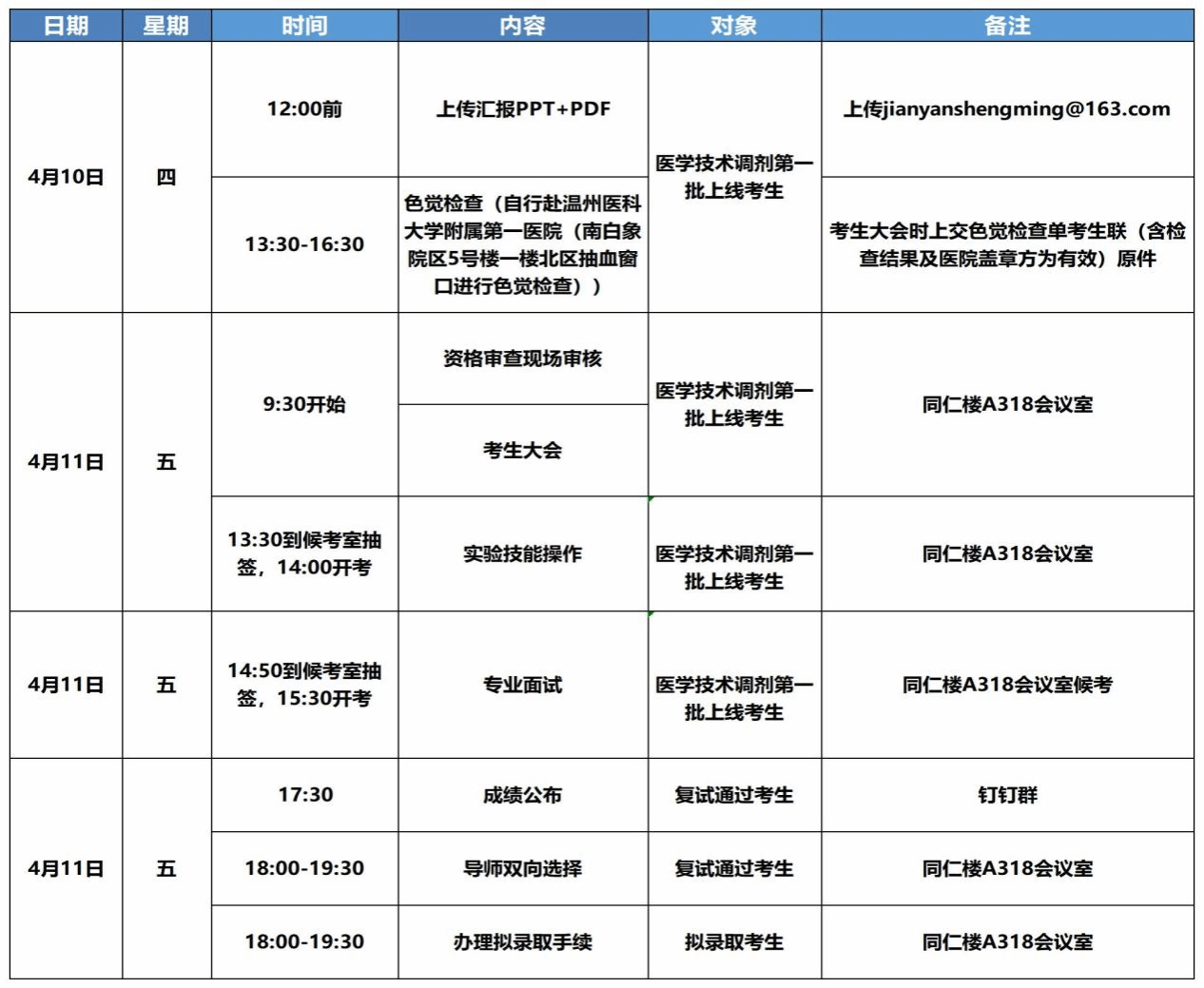 2025年硕士研究生复试录取工作方案》文件精神,现将硕士研究生(医学技术专业型)第一批考生调剂复试安排情况通如下: