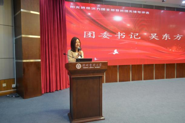 班主任代表肖星星用“团结、负责、担当”几个关键词来肯定了同学们的积极表现,也鼓励大家在更多的平台和场合展示团支部的优秀风采。团委书记吴东方介绍了学院关于班团建设的理念、品牌活动以及机制保障,引导同学们积极参与学校学院搭建的各类班团建设活动,用心用力做好特色团支部的培育创建。