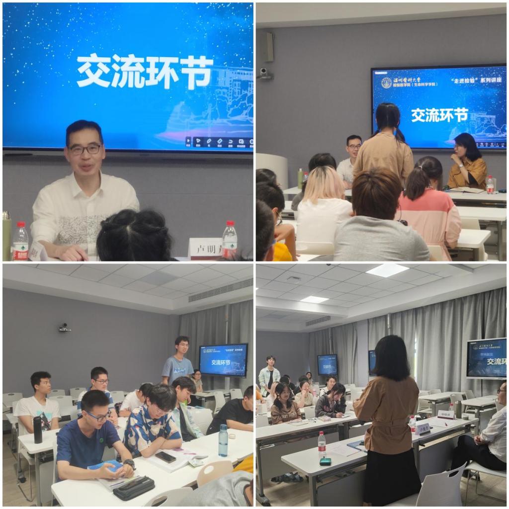 交流环节中,同学们和卢明芹教授就检验医师发展就业前景、面对紧急事件时医生如何选择、医学生如何学习等问题展开讨论,卢明芹教授幽默风趣,根据自身经历一一为大家解答,同学们也各抒己见,现场气氛热烈。