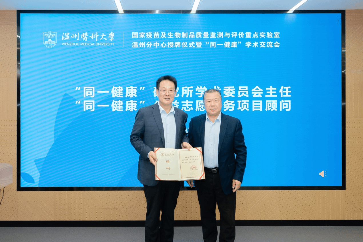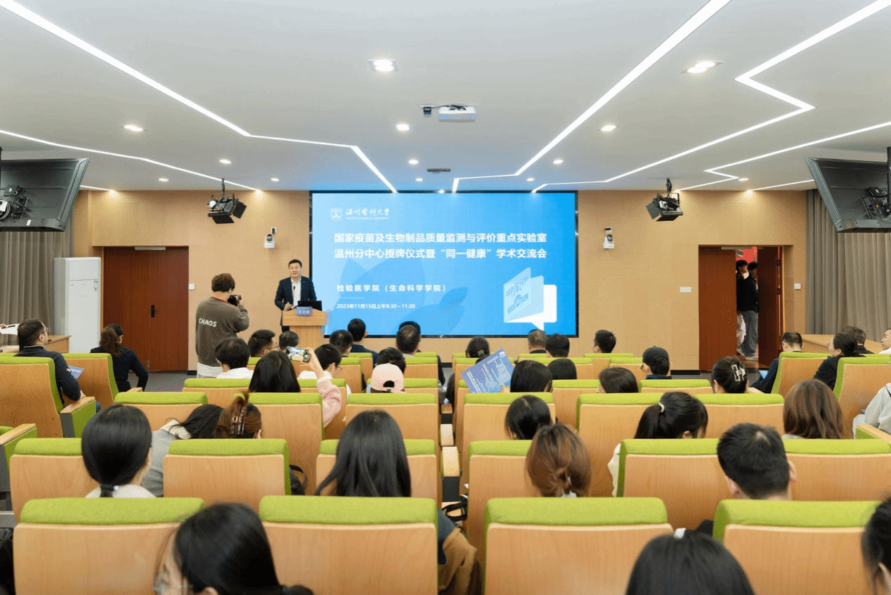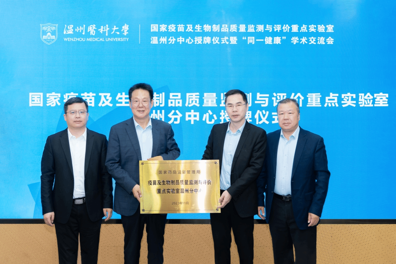 活动现场举行了国家药品监督管理局疫苗及生物制品质量监测与评价重点实验室温州分中心授牌仪式。
