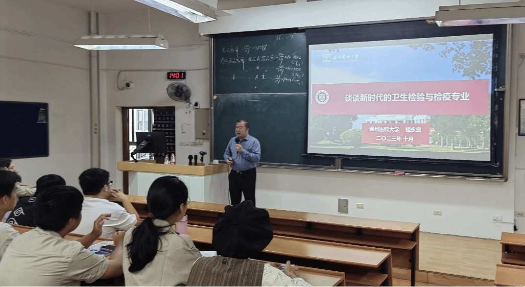 卫生检验与检疫专业新生教育大会由专业负责人楼永良老师主讲,楼永良老师介绍了麻豆社 以及卫检专业的发展历程、卫检专业概况、如何成为一名优秀的新时代卫检人才三个方面出发,为2023级新生进行了学业规划等多方面的引导,他着重分析了卫检专业发展前景,并对同学们成为一名优秀的卫检专业人才提出了殷切期望。