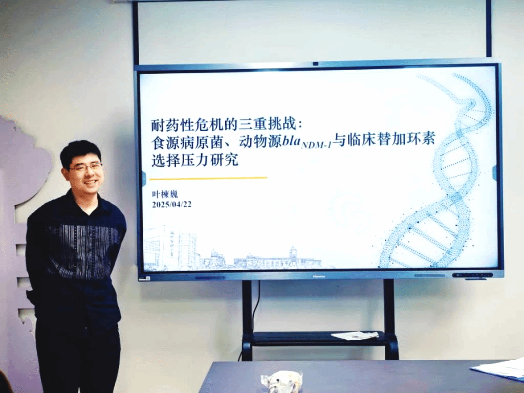 2025422日下午,求真讲坛(院内专场)系列讲座之耐药性危机中的三重挑战:食源病原菌、动物源blaNDM-1与临床替加环素选择压力研究”在生物医药科研大楼702会议室举行。本次论坛由学院副院长黄海山主持,叶楝巍博士主讲,学院青年科研人员参加了本次学术交流活动。
