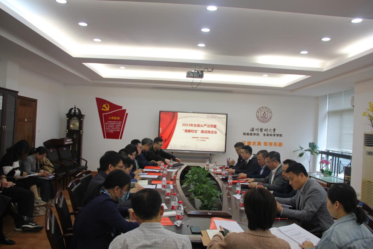 会议深入学习贯彻习近平总书记关于全面从严治党的重要论述、二十届中央纪委二次全会、省纪委十五届二次全会等上级有关会议精神及学校2023年全面从严治党暨“清廉医大”建设推进会精神,总结回顾过去一年学院全面从严治党工作,研究部署2023年全面从严治党和“清廉检生”建设工作。