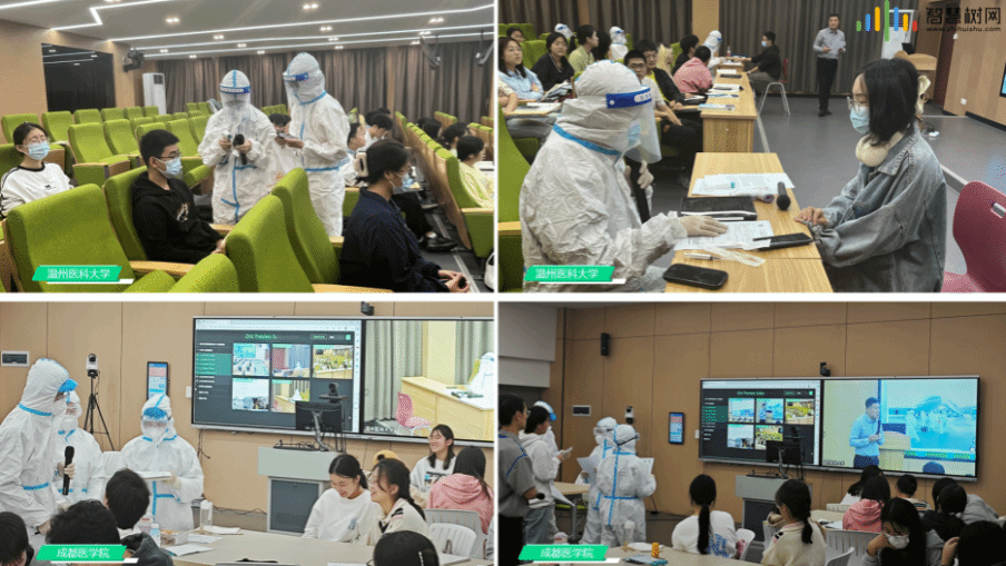 在《卫生检验检疫》的三次课堂上,关万春教授对传染病进行了系统讲解。除理论授课外,在第二、第三次课堂中,课程安排了旅行医学咨询演练、口岸人员卫生检疫模拟训练,三所院校的学生在进行防护环节的规范化培训后,穿上防护服,通过角色扮演,运用课堂所学知识,模拟了口岸人员在面对疫情案例之时,如何进行登临检疫、流行病学调查、应急处理等卫生检疫操作,将理论联系实际在课堂上落到实处。西南医科大学、成都医学院师生通过直播连线同步开展模拟训练,深度参与了麻豆社
