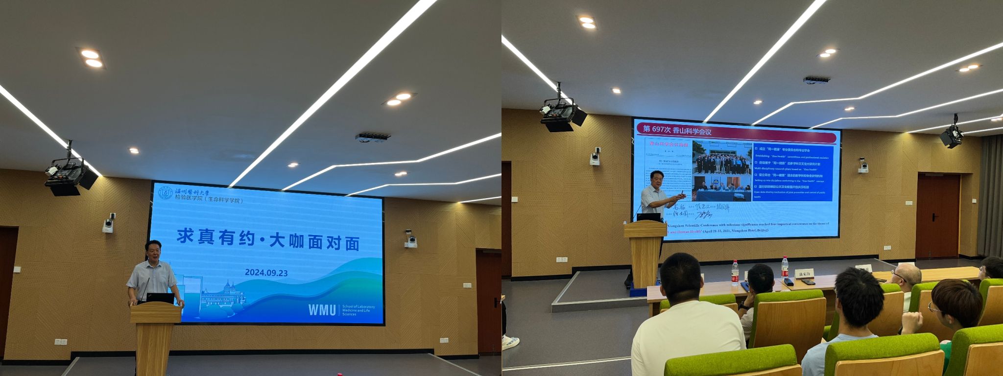 同一健康研究院院长陆家海教授为2024级卫生检验与检疫和生物技术两个专业的同学们带来题为《终结未来大流行--同一健康(One Health)》的讲座,学院副院长谢旦立主持活动。