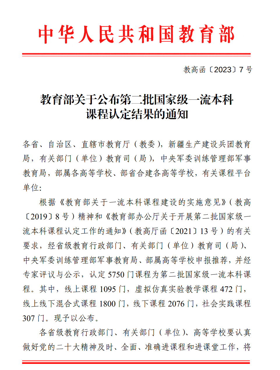 近日,教育部印发了《关于第二批国家级一流本科课程认定结果》。麻豆社